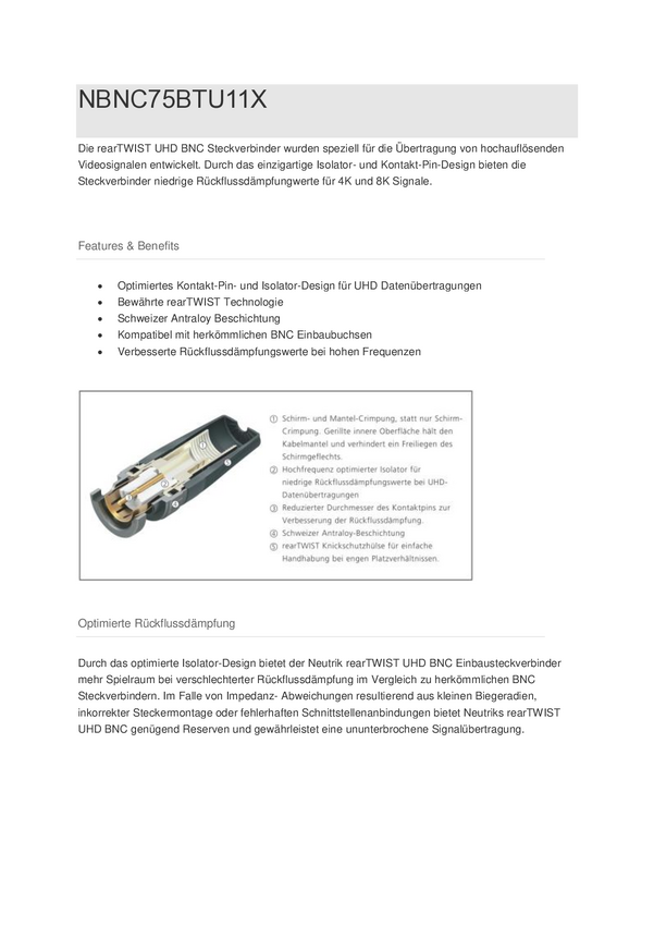 NBNC75BTU11X Złącze BNC Neutrik NBNC75BTU11X złącze męskie proste 75 Ω 1 szt.