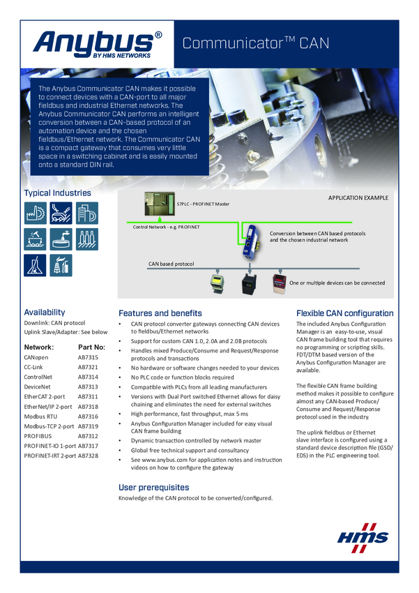 AB7318 Konwerter CAN Anybus AB7318 CAN Bus, USB, Sub-D9 izolowany galwanicznie, Et...