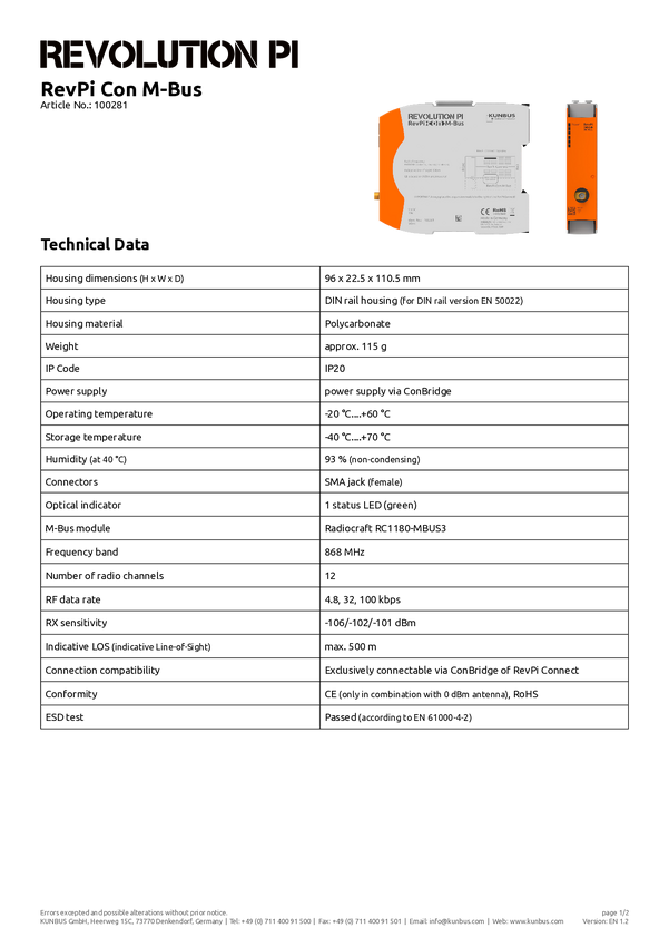 Moduł magistrali Revolution Pi by Kunbus PR100281
