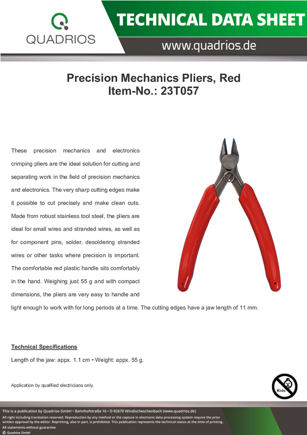 Quadrios 23T057 23T057 Szczypce tnące boczne do mechaniki precyzyjnej bez fasety 123 mm