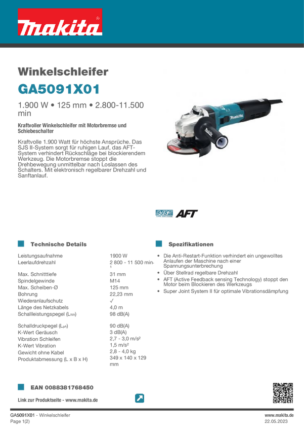 GA5091X01 Szlifierka kątowa Makita GA5091X01 1900 W