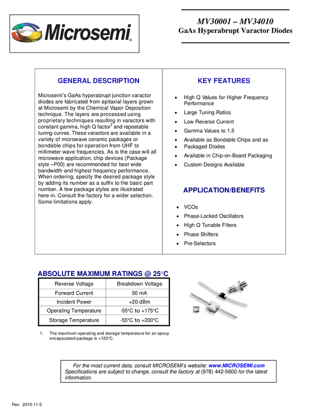 MV31000-GaAs-Varactor GaAs Hyperabrupt Varactor MV3001 - MV34010