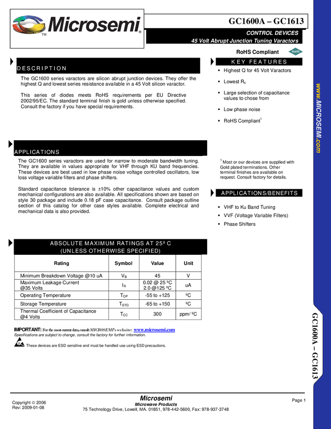 GC1600-45V-Abrupt-Varactor 45 V Abrupt Junction Tuning Varactors