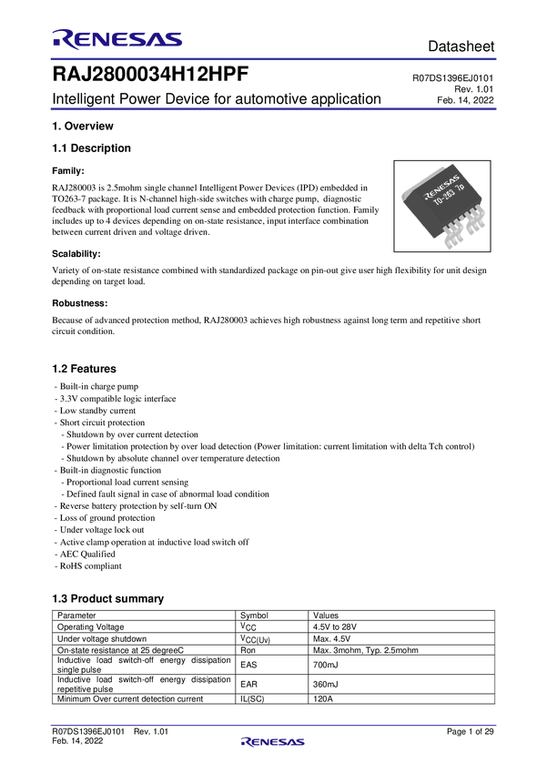 RAJ2800034H12HPF#GB0 Intelligent Power Device for Automotive Application