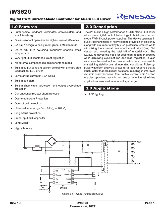 IW3620-00 Digital Offline 40W PWM Controller with PrimAccurate™ Primary-Side Control...