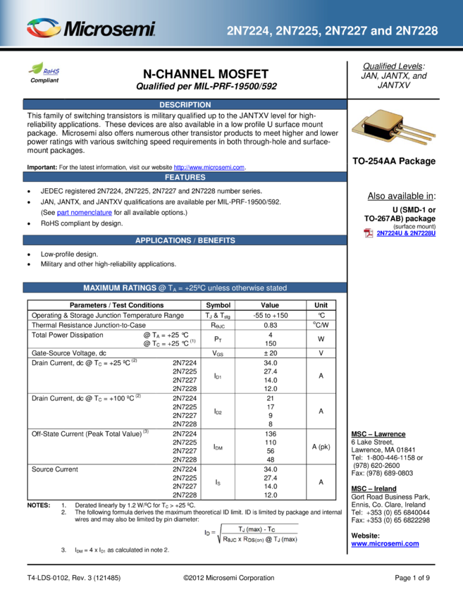 JAN2N7224, JANTX2N7224, JANTXV2N7224, 2N7225, JAN2N7225, JANTX2N7225, JANTXV2N7225, 2N7227, JAN2N7227, JANTX2N7227, JANTXV2N7227, 2N7228, JAN2N7228, JANTX2N7228, JANTXV2N7228