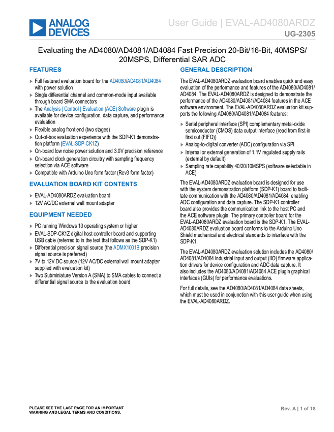 AD4080 20-Bit, 40 MSPS, Differential SAR ADC