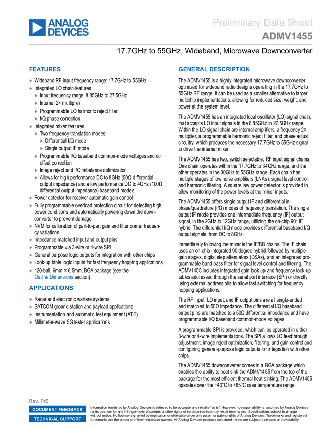 ADMV1455 17.7GHz to 55GHz, Wideband, Microwave Downconverter