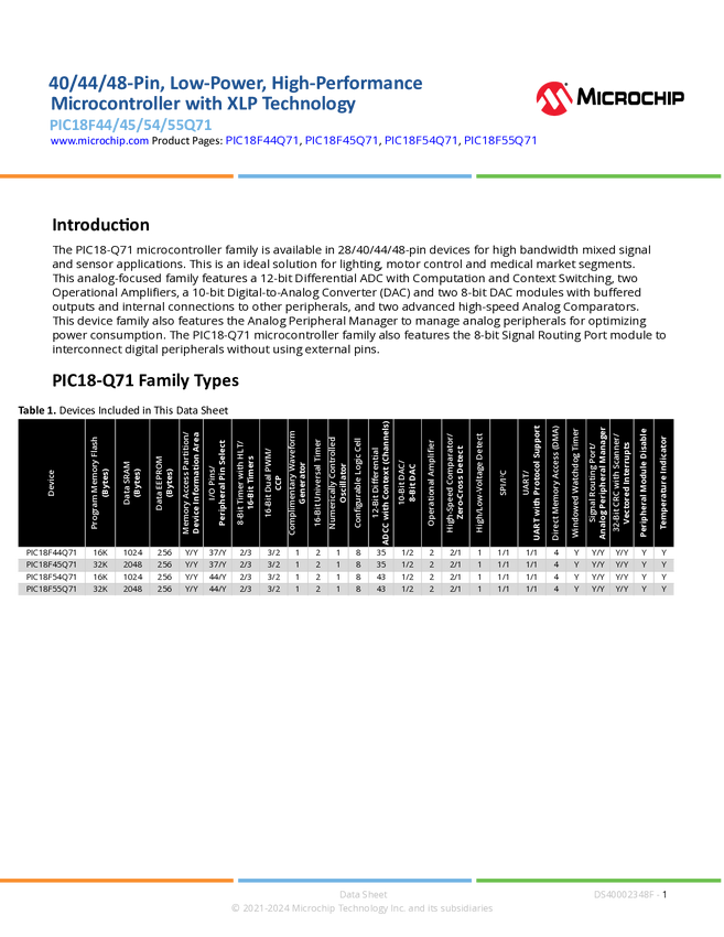 PIC18F44/45/54/55Q71 - 40/44/48-Pin, Low-Power, High-Performance Microcontroller with XLP Technology Data Sheet