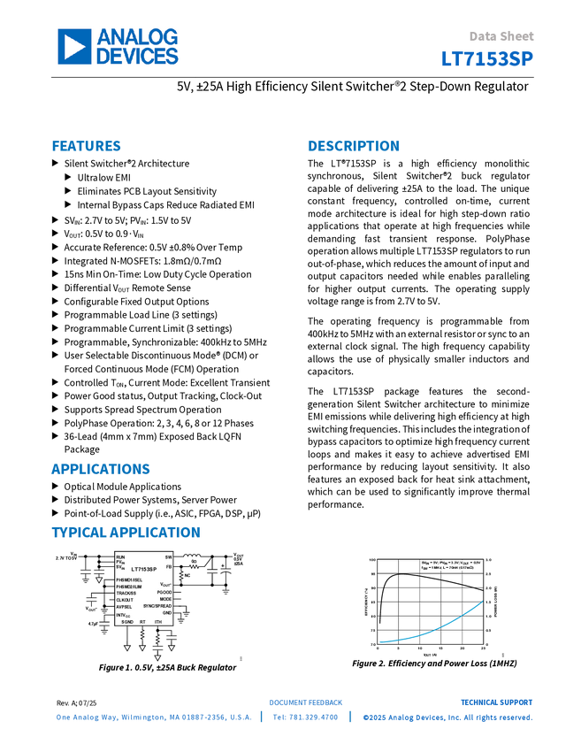 LT7153SP 5V, ±25A High Efficiency Silent Switcher2 Step-Down Regulator