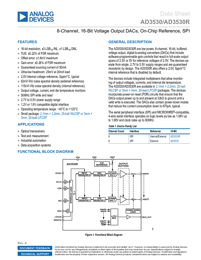 AD3530R 8-Channel, 16-Bit Voltage Output DACs, SPI