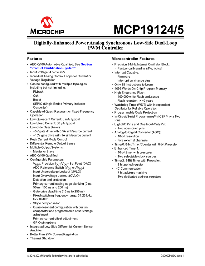 MCP19124 MCP19124/5 - Digitally Enhanced Power Analog Synchronous Low-Side Dual Loop