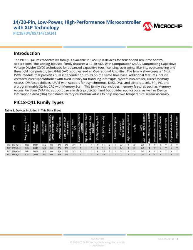 PIC18F04/05/14/15Q41 14/20-Pin, Low-Power, High-Performance Microcontroller with XLP Technology Data Sheet