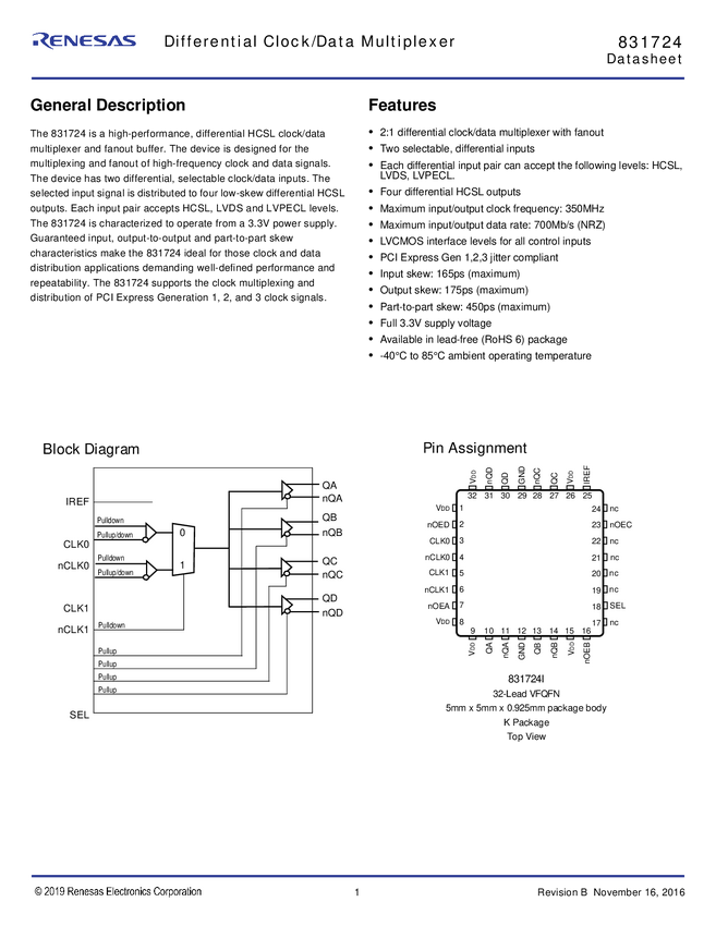 831724I 2:4 HCSL PCIe Clock Buffer
