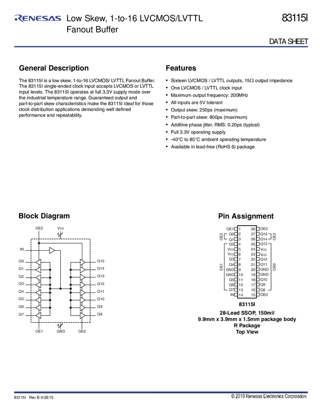83115I Low Skew,1-to-16 LVCMOS/LVTTL Fanout Buffer