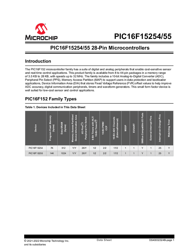 PIC16F15254/55 28-Pin Microcontrollers
