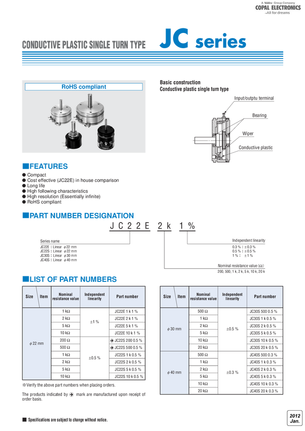 - JC40S-10K, JC30S-500, JC30S-1K, JC30S-2K, JC30S-5K, JC30S-10K, JC30S-20K
