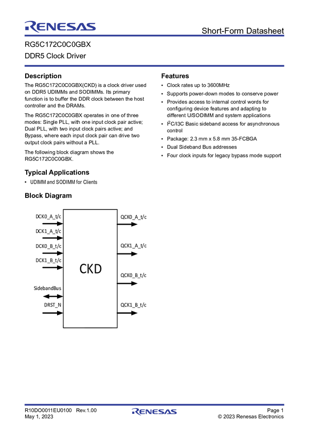 DDR5 Client Clock Driver for UDIMM, SODIMMs, Over Clocking DIMMs and Memory Down