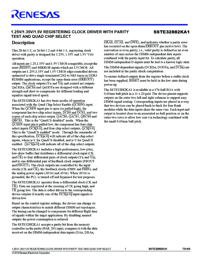 SSTE32882KA1AKG DDR3 Register + PLL