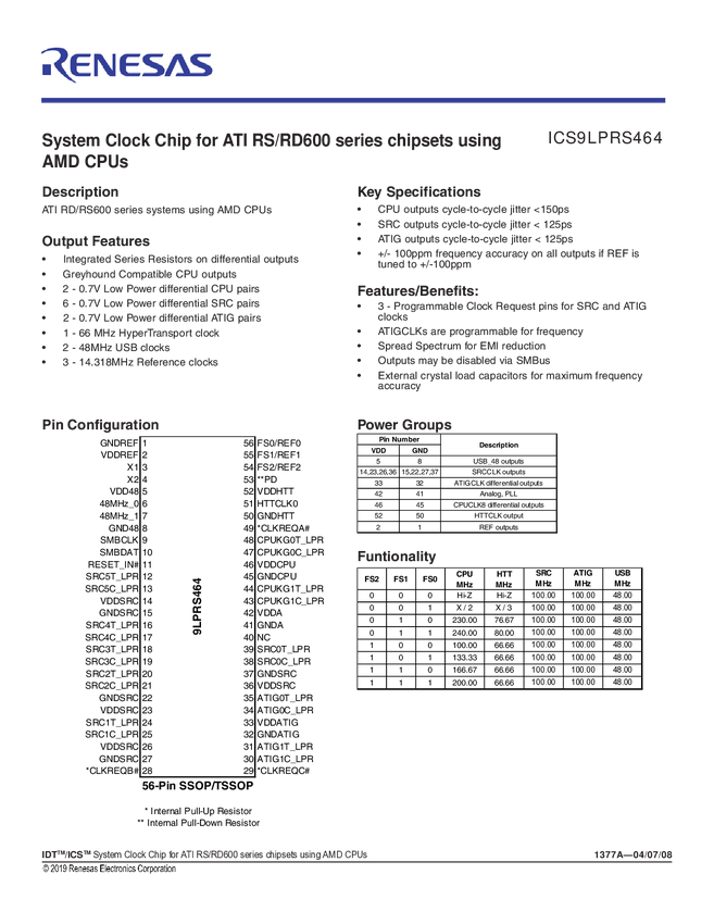 System Clock Chip for ATI RS/RD600 series Chipsets Using AMD CPUs