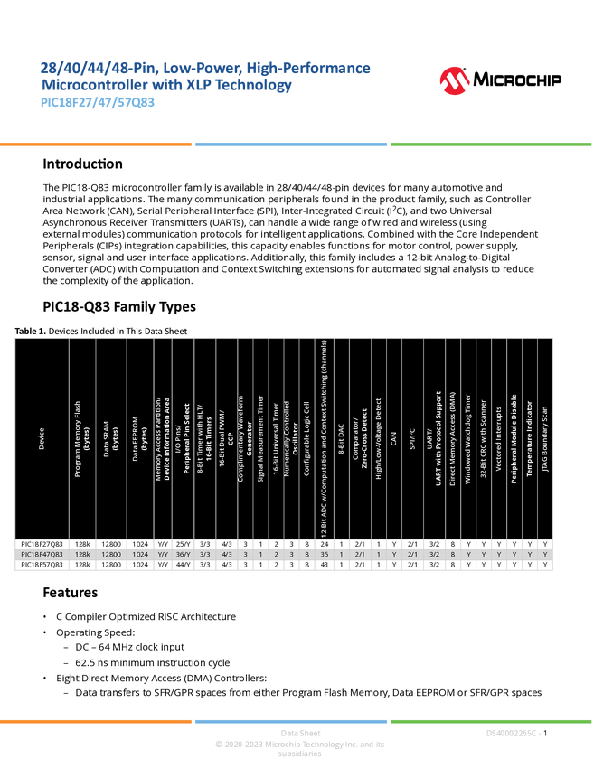 PIC18F27/47/57Q83 - 20/40/44/48-Pin, Low-Power, High-Performance Microcontroller with XLP Technology Data Sheet