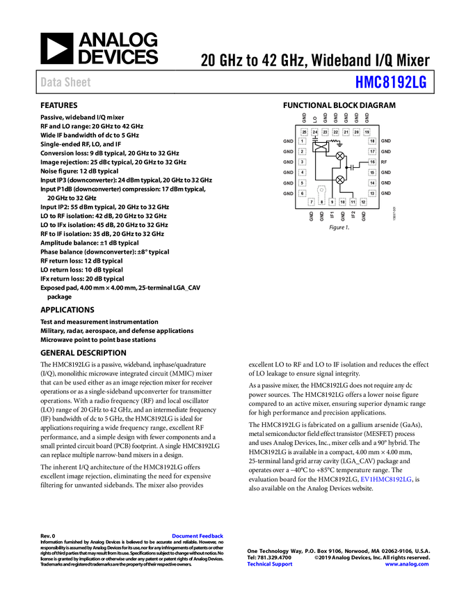 HMC8192 20 GHz to 42 GHz, Wideband I/Q Mixer