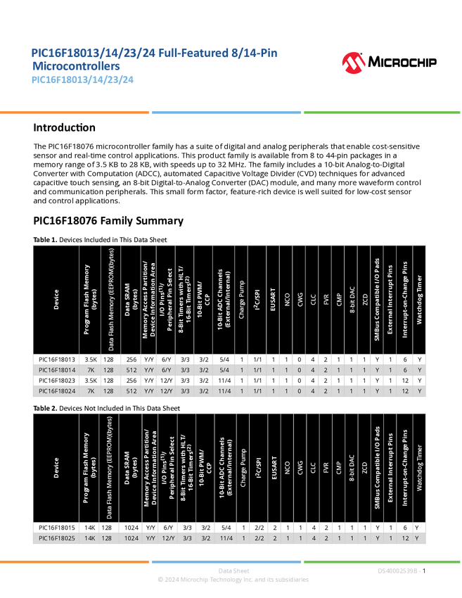 PIC16F18013/14/23/24 Full-Featured 8/14-Pin Microcontrollers