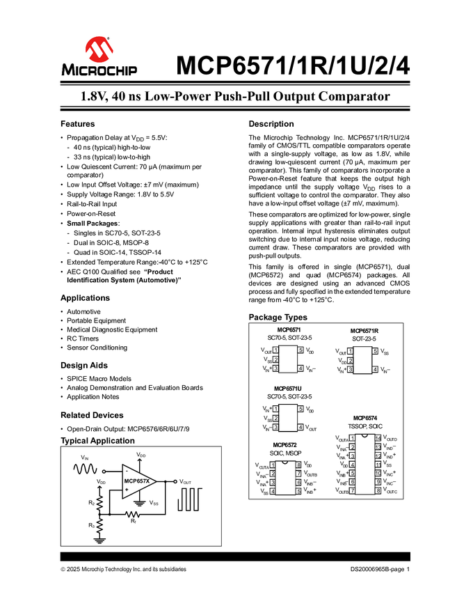MCP6572, MCP6571R, MCP6571, MCP6571U