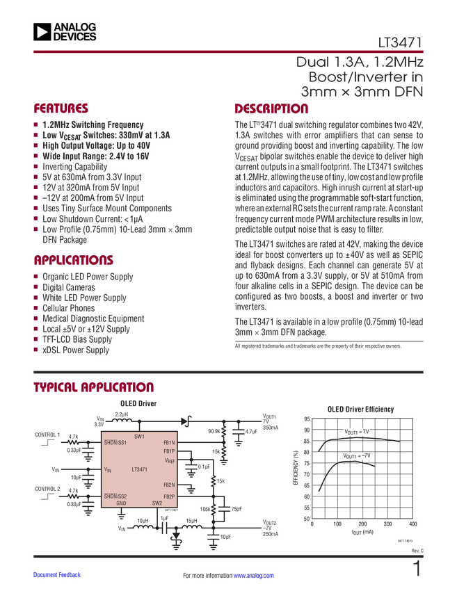 LT3471 Dual 1.3A, 1.2MHz Boost/Inverter in 3mm × 3mm DFN