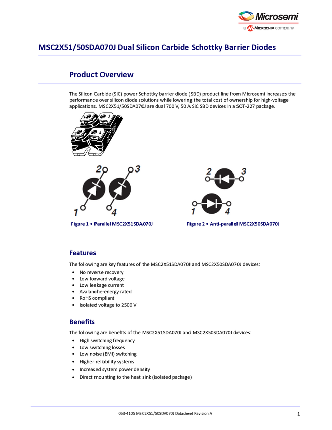 MSC2X50SDA070J MSC2X51SDA070J, MSC2X50SDA070J SIC SBD 700V 50A Dual Parallel_Anti-Paralle...