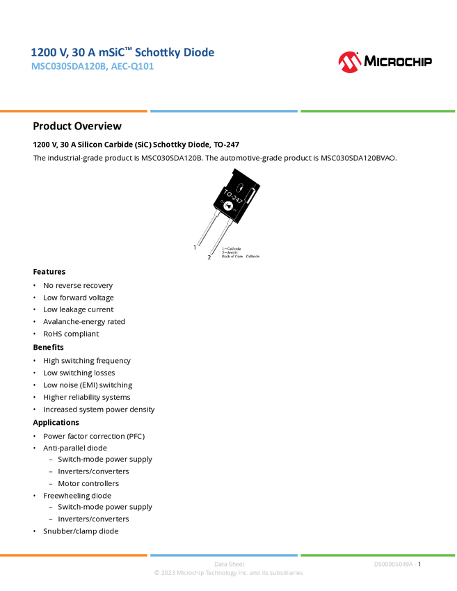 MSC030SDA120B 1200 V, 30 A mSiC™ Schottky Diode Datasheet