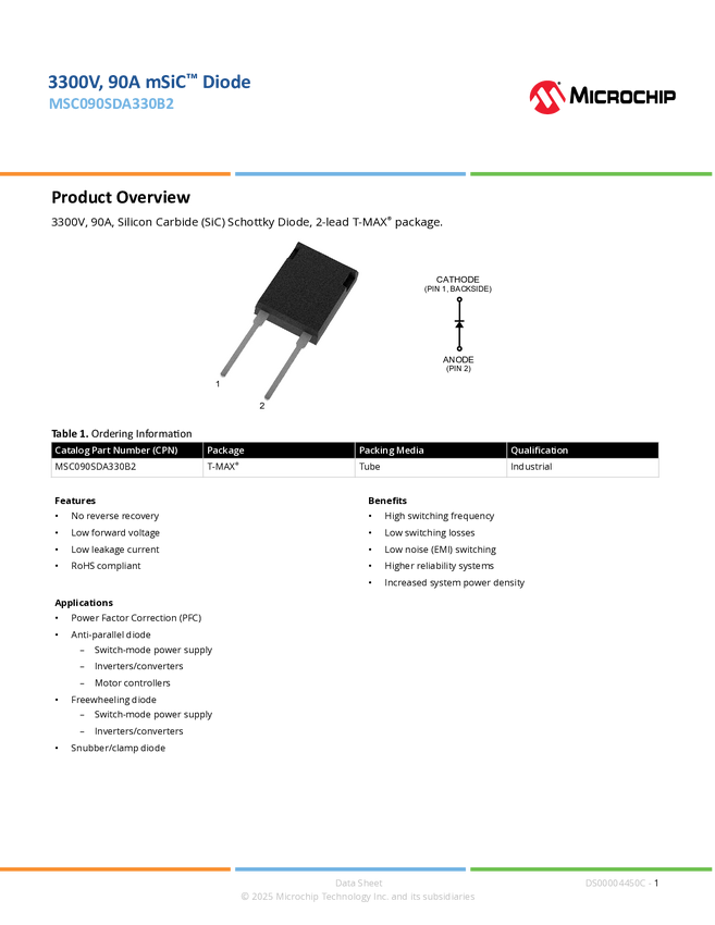 MSC090SDA330B2 3300V, 90A mSiC™ Diode T-MAX Datasheet
