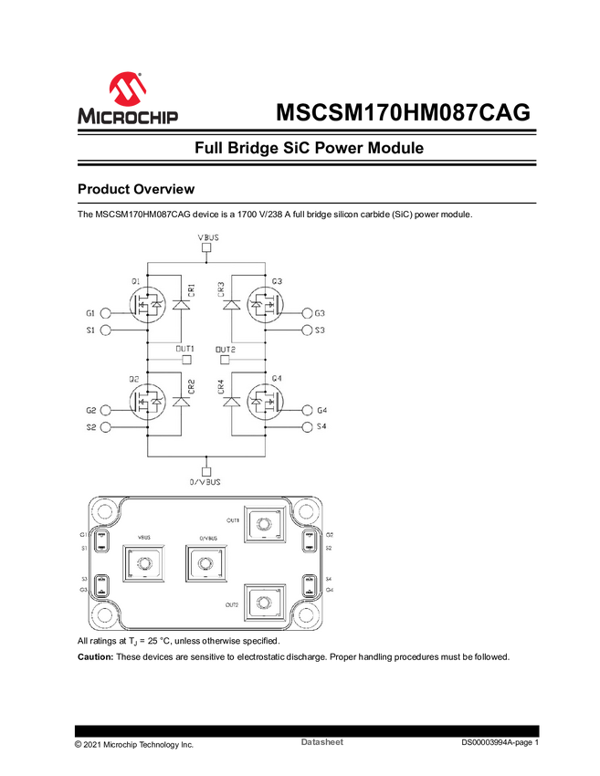 MSCSM170HM087CAG 1700V Full Bridge SiC MOSFET Module Datasheet