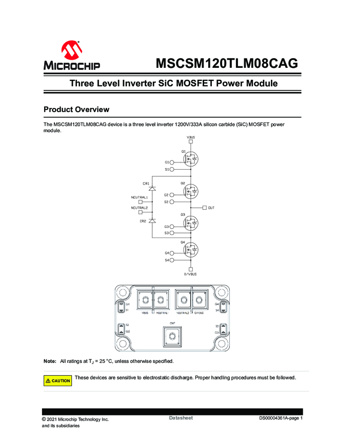 MSCSM120TLM08CAG 1200V Three Level Inverter SiC MOSFET Module Datasheet