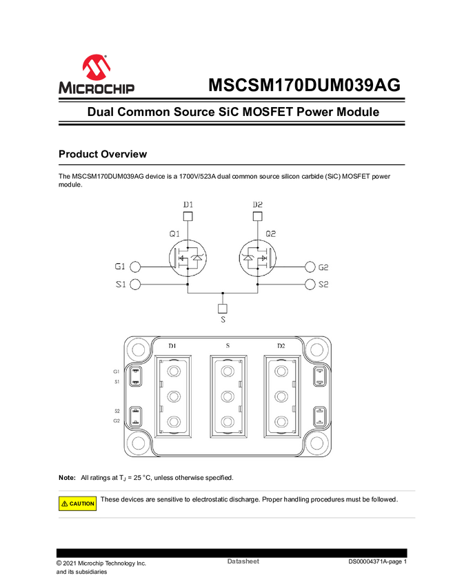 MSCSM170DUM039AG 1700V Dual Common Source SiC MOSFET Module Datasheet