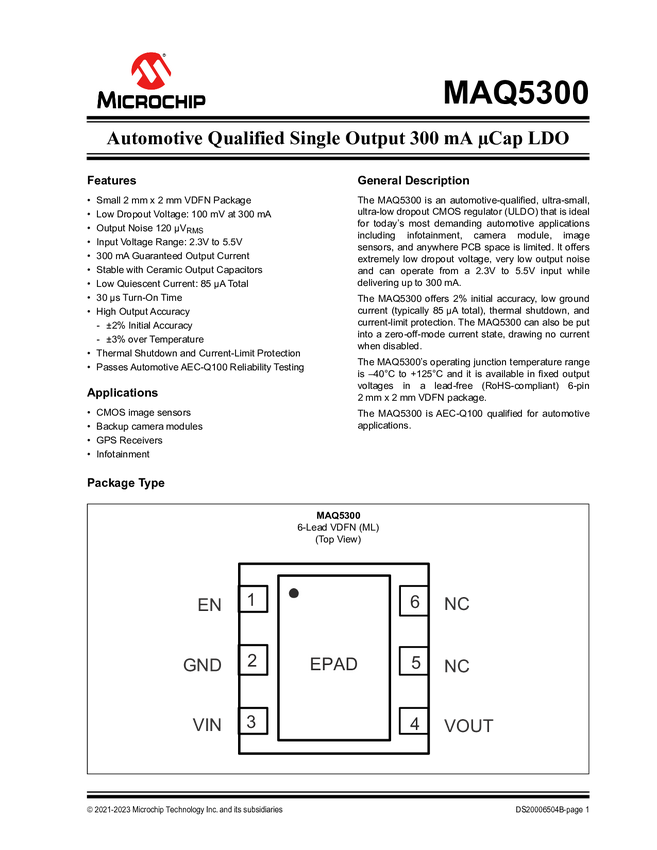 MAQ5300 Automotive Qualified Single Output 300 mA µCap LDO
