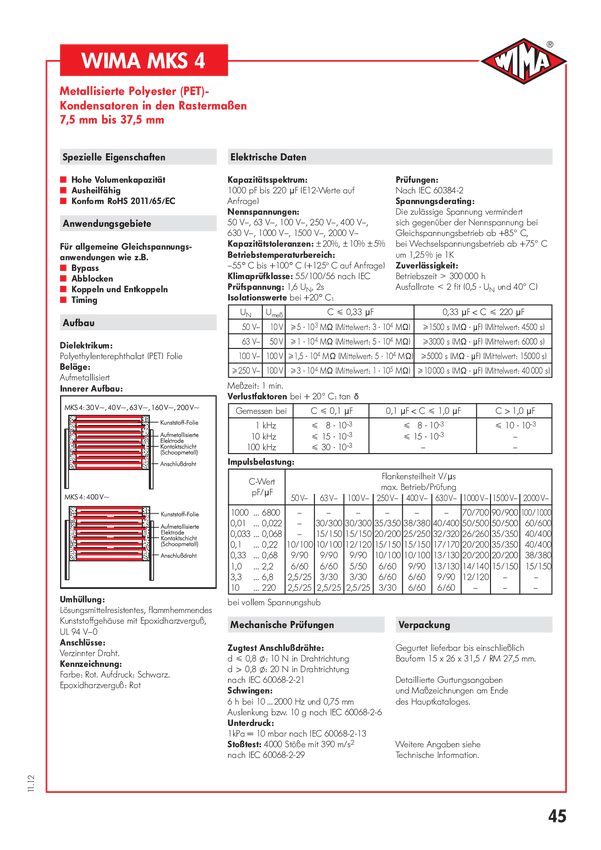 Wima MKS4G034704F00JH00 5 % 400 V/DC Kondensator foliowy MKS 800 szt.
