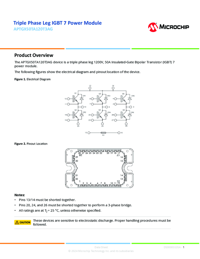APTGX50TA120T3AG 1200V Triple Phase Leg IGBT 7 Power Module