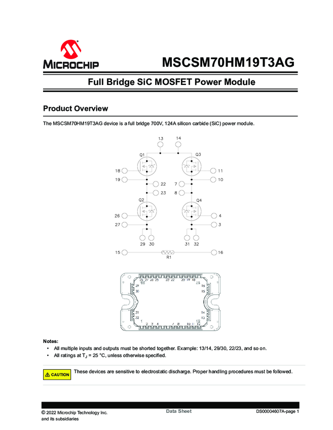 MSCSM70HM19T3AG Full Bridge SiC MOSFET Power Module