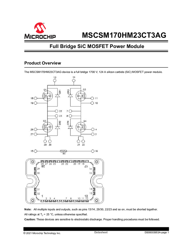 MSCSM170HM23CT3AG 1700V Full Bridge SiC MOSFET Module Datasheet