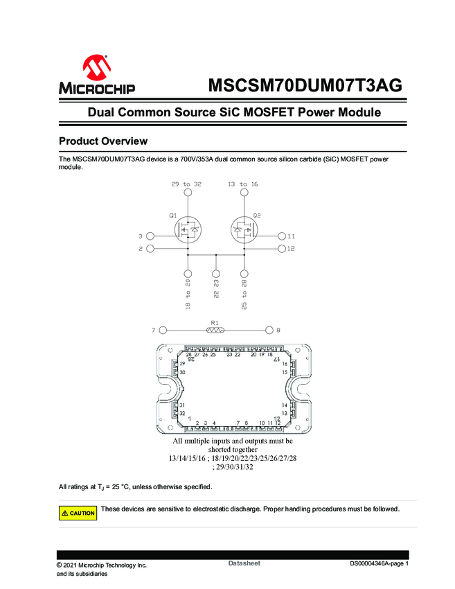 MSCSM70DUM07T3AG 700V Dual Common Source SiC MOSFET Module Datasheet