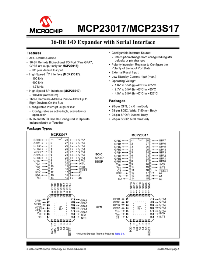 MCP23S17 MCP23017/MCP23S17 Data Sheet