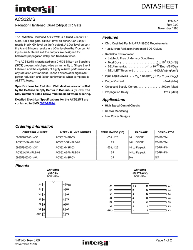 ACS32KMSR-03 Rad-Hard Quad 2-Input OR Gate