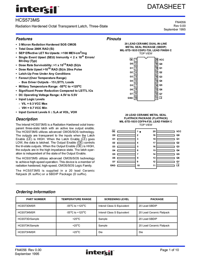 HCS573KMSR CMOS Octal Transparent Latch, Three-State