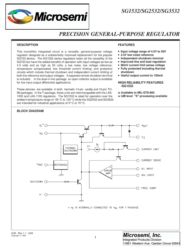 SG1532J-883B, SG1532J-DESC, SG1532L, SG1532L-883B, SG1532T, SG1532T-883B, SG1532T-DESC, SG2532J, SG2532T, SG3532J, SG3532T