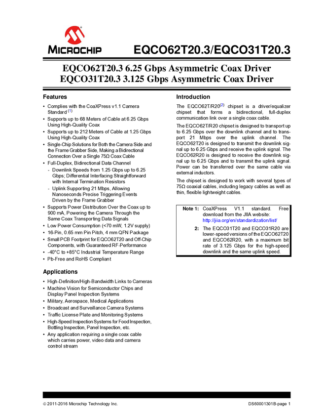 EQCO31T20 EQCO62T20.3 and EQCO31T20.3 Data Sheet