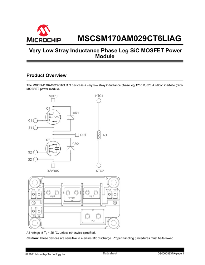 MSCSM170AM029CT6LIAG 1700V Phase Leg SiC MOSFET Module Datasheet