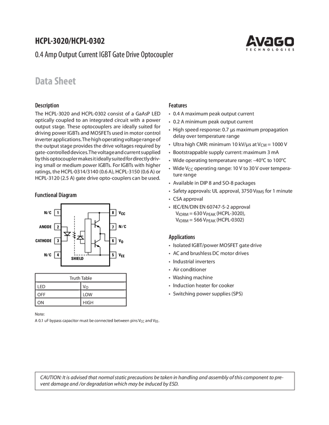 Broadcom Transoptor wyjścia logicznego HCPL-0302-500E SO-8 taśma na dużej rolce