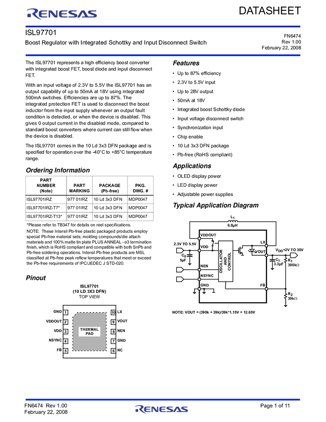 ISL97701IRZ-T13, ISL97701IRZ-T7, ISL97701