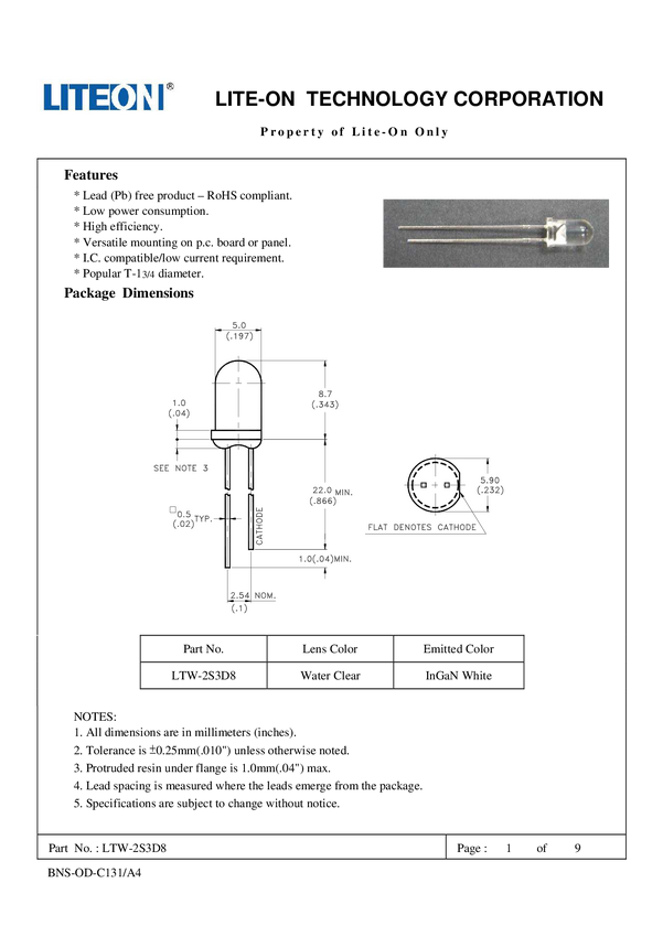 LTW2S3D8 Dioda LED THT Lite-On LTW2S3D8 LTW2S3D8, 5 mm, 17.000 mcd, 1 szt.